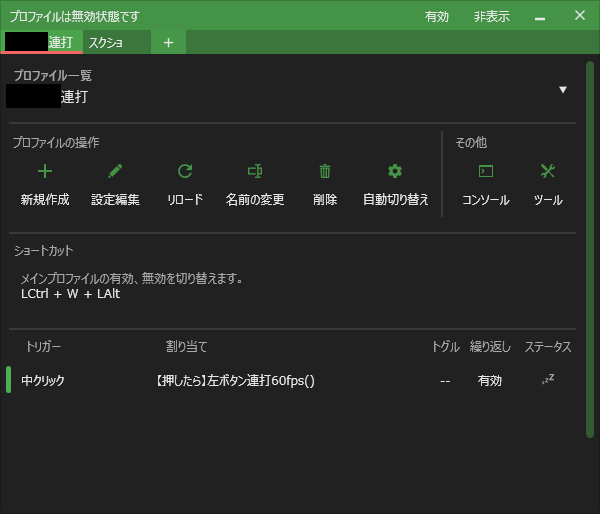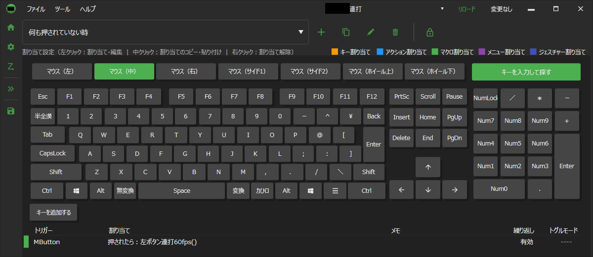 中央ボタンを押している間のみ左クリック連射