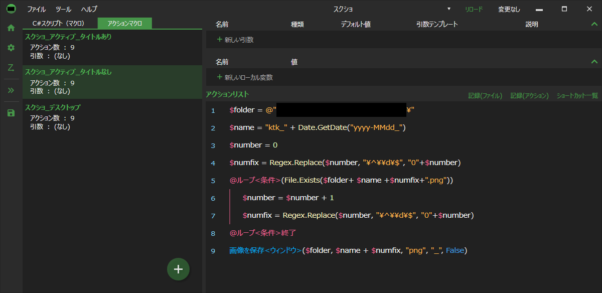 アクティブウィンドウやデスクトップのスクショを取るアクション。他のソフトの方が簡単にできるとは思いますが・・
