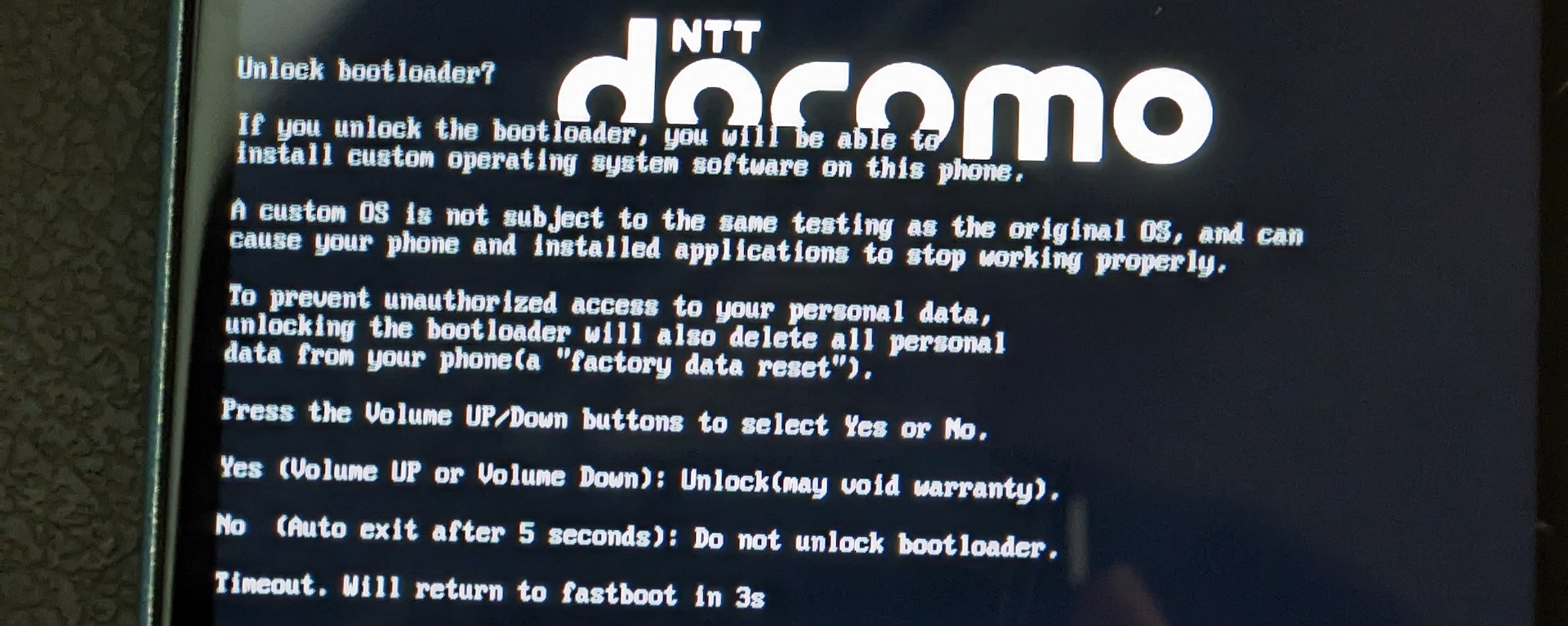 arrows We2(F-52E)が1円・・いや、3851円で配っていたので貰ってきたのですが、無理やろ~と思いながらfastboot flashing unlockしてみたら、特に障害なく普通にできちゃいました。